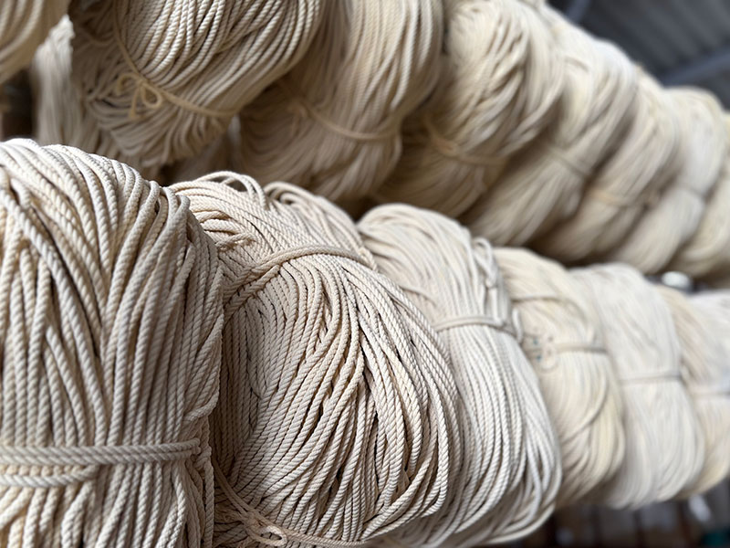 | タスラン糸を100%使用し、サラッとした手触りのロープです。吸湿性に優れ、樹脂染め加工の効果も長続きします。 |