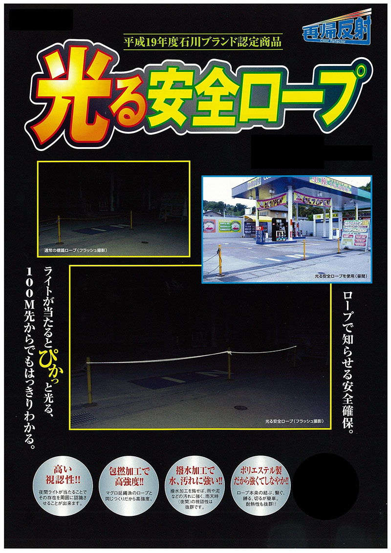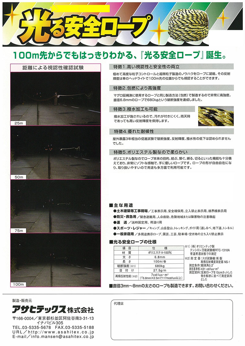 | ポリエステルフィラメントと光を反射する特殊な糸を使用したロープです。 |